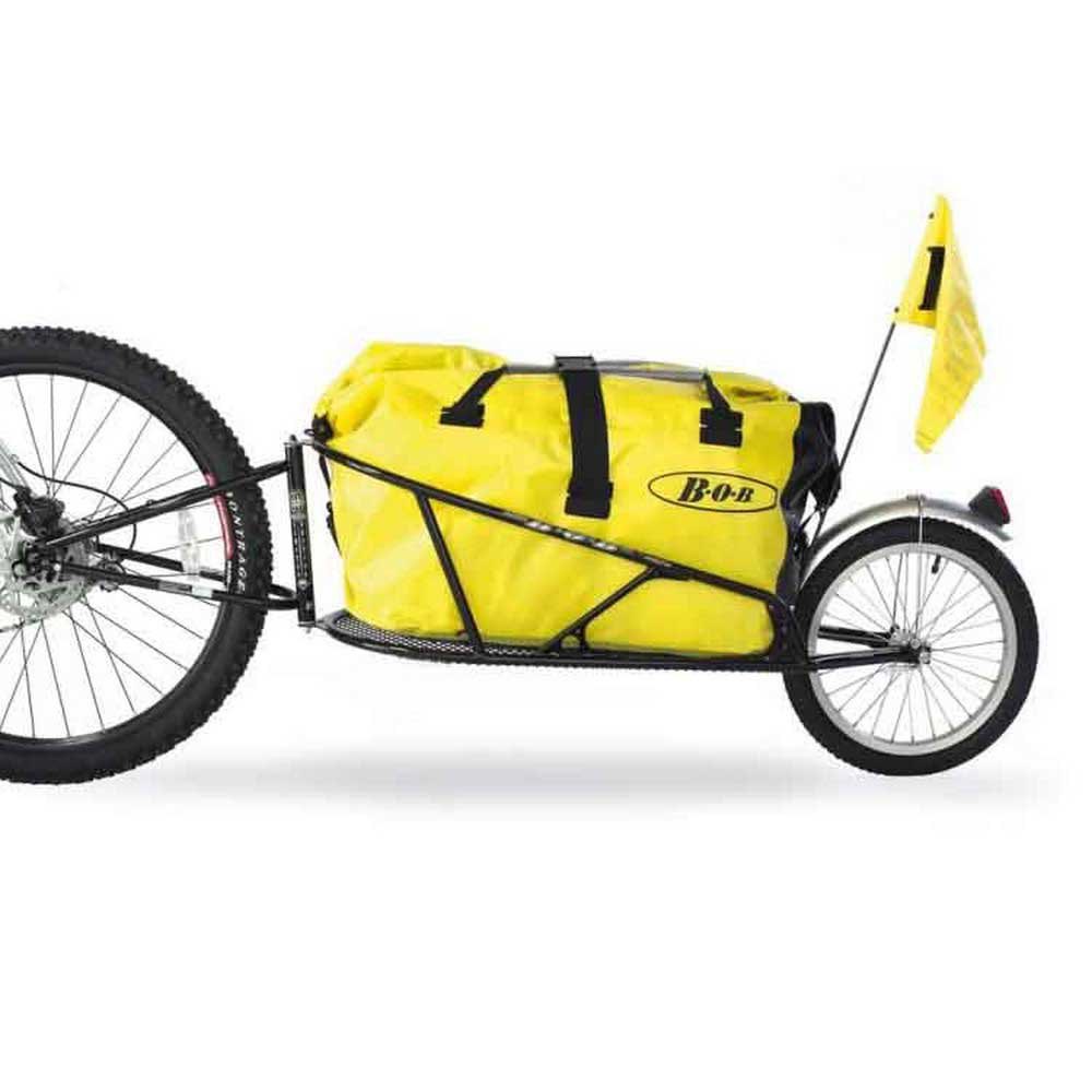 BOB Yak trailer. Incluye reflectante, reflectores de radio y bandera.caracteristicas:Rueda trasera de 16 ´´.Estructura estable de acero cromo molibdeno.2 receptáculos para portabidón, receptáculo guardabarros, soporte para bandera.Centro de gravedad muy bajo para un mejor manejo.Especificaciones:Área de carga: 62 x 40 cm. Carga máxima: 32 kg.Peso: 6.1 kg (sin bolsa BOB).