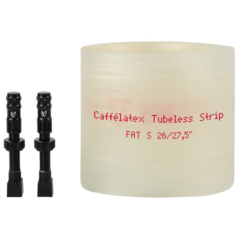 Caffélatex Tubeless Strip Plus/Fat es una tira de llanta sin cámara muy ligera, a prueba de pinchazos y transparente que hace que las conversiones sin cámara sean rápidas y fáciles. Strip permite la conversión sin cámara de la mayoría de las ruedas de bicicleta de montaña Plus y Fat, utilizando neumáticos Tubeless o Tubeless Ready y sellador Caffélatex o Végétalex. Para llantas de bicicleta de tamaño estándar, consulte Caffélatex Tubeless Strip.Características:La forma más fácil de realizar una conversión sin cámaraFondo de llanta tubeless muy ligeroResistente a dañosLarga duración, se puede mover de una rueda a otraRango extendido de anchos, tamaños de rueda Covering Plus y FatConversión sin cámara, fácil:Caffélatex Strip es la solución tubeless definitiva para llantas muy difíciles (por ejemplo, llantas recortadas gruesas, llantas de aluminio con acabado de superficie mate, llantas de carbono con tratamiento de desmoldeo donde la cinta no se pega demasiado, llantas con canal muy profundo, llantas unidas por pernos donde la unión no está soldada, etc.). Esto se debe a que la tira NO es adhesiva: está hecha de una sola pieza y depende de su elasticidad para asentarse firmemente en el borde.Para convertir una llanta en tubeless, simplemente retire la tira de la llanta existente, elija el tamaño de tira apropiado y siga los siguientes sencillos pasos:(Paso opcional, no para llantas recortadas o de una sola pared) Use un rollo de cinta aislante y selle los orificios de los radios de la llanta. Esto solo para crear una protección adicional para evitar que el sellador ingrese a la cámara interna de la llanta, en el caso improbable de que la tira se mueva y deje pasar algo de líquido.Inserte la válvula tubeless Caffélatex proporcionada en la tira, de modo que la base de goma esté en contacto con la tira.Asegure la tira al borde, apretando la tuerca en el vástago de la válvula. Es importante empujar la base de la válvula contra el borde mientras lo hace, para lograr una hermeticidad adecuada. Importante: Algunas llantas de una sola pared (principalmente de aluminio, llantas recortadas para Fat Bikes) pueden requerir la instalación de una arandela adicional debajo de la tuerca, antes de enroscarla contra la llanta. Proporcionamos una arandela adicional por válvula para Plus L y All Fat Strip,Manteniendo la rueda con la válvula a las 12 en punto, termine de montar la tira en la llanta.Con un destornillador o una herramienta similar, centre la tira dentro del canal de la llanta.Agregue neumático sin cámara, sellador Caffélatex, inflar, andar.Ligero:Los pesos (*) para una sola tira son:Tira Grasa L 26″/27,5″: 205 GAltamente resistente a daños y pinchazos:El polímero especial empleado en su construcción hace que la tira sea muy resistente a daños y pinchazos. También es muy estable desde el punto de vista químico y no puede dañarse con Caffélatex u otros selladores de neumáticos no químicamente agresivos.De larga duración:Algo que puede hacer con tira que simplemente no puede hacer con cintas sin cámara: mover la tira de una llanta a otra. Como el material de la tira es muy duradero, su vida útil puede exceder la del borde en el que está montado, y se puede quitar y montar en otro borde. La tira también se puede quitar y montar en la misma llanta si es necesario reemplazar un radio.