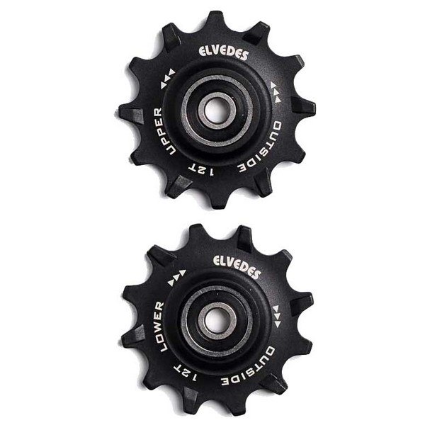 Elvedes CP2017100 Polea RuedasEspecificaciones:Set 2×11 dientesCojinetes de acero inoxidableCompatible con Campagnolo 11 velocidades, Shimano 9 11 velocidades, SRAM X0 / X9 / X7apex / Rivel / Force 10 velocidades