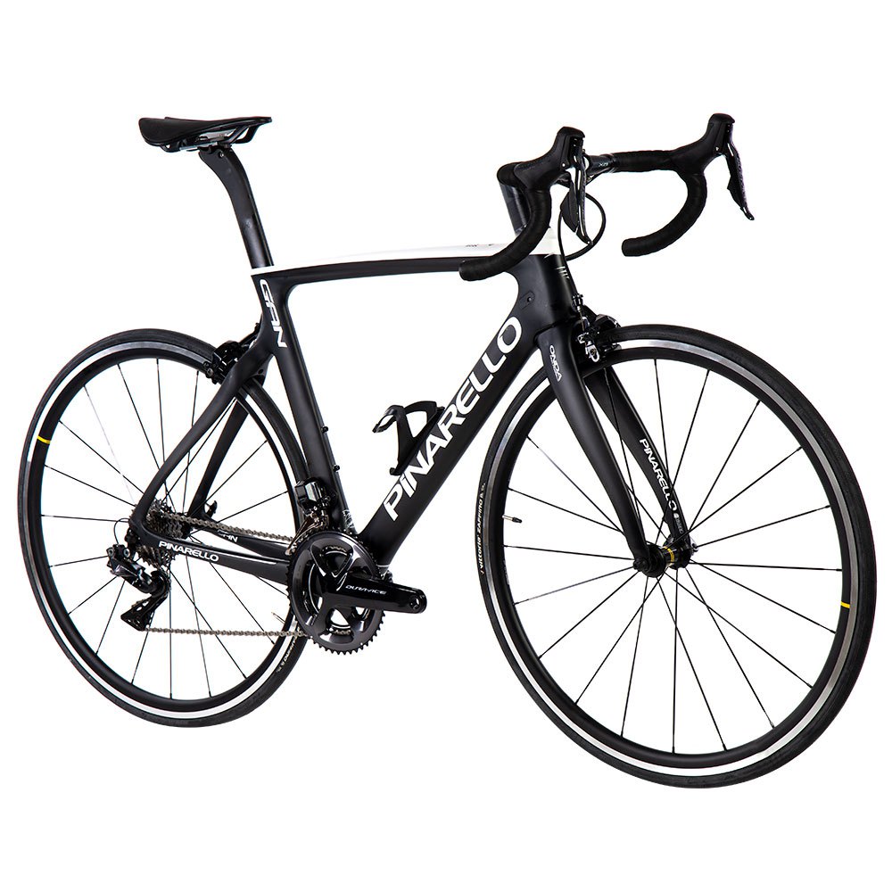 Nacidos para largas distancias: ¡imparables!El GAN se deriva directamente del Dogma F8, pero varias modificaciones específicas lo convierten en un cuadro menos extremo, manteniendo el estilo y la sensación de las bicicletas Pinarello.Las principales características derivadas de DOGMA F8 son: asimetría del cuadro y un nuevo tipo de carbono de alta resistencia, que es ligeramente menos rígido.Especificaciones principalesCuadro: GAN Carbon T600 UD asimétricoGrupo: SolapaGrupoDesviador: Dura Ace R9150 Di2Cambio trasero: Dura Ace R9150 Di2Manetas de cambio: Dura Ace R9150 Di2Bielas: Dura Ace FC R9100 172,5 mmPlatos: Dura Ace FC R9100 11 30tCasete: Dura Ace CS R9100 11 30tFreno delantero: Dura Ace FC R9100Freno trasero: Dura Ace FC R9100RuedasLlantas: Mavic Cosmic Elite USTNeumáticos: Vittoria Zafiro 700 x 25ComponentesManillar: La mayoría de Jaguar XA AeroPotencia: Serie D 80mm 8ºSillín: Selle Italia Modelo X