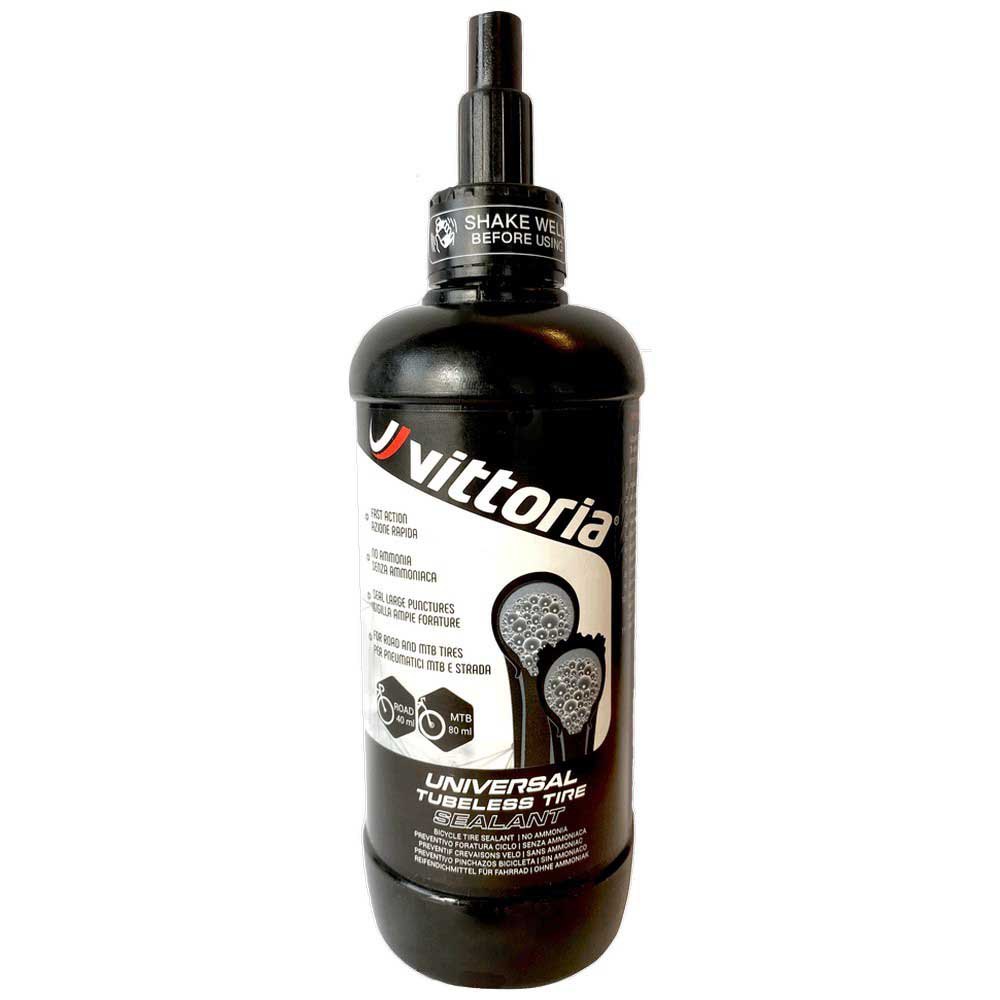 Vittoria presenta Universal Sealant, la nueva gama de selladores antipuntura para neumáticos de bicicleta diseñados para uso en carretera y MTB. Se ha mejorado la fórmula del sellador. Universal Sealant no contiene amoniaco, repara pinchazos mayores (hasta 7 mm), actúa más rápido y es compatible tanto con neumáticos de carretera como sin cámara de MTB, y con cualquier tipo de cámara de aire. Disponible en varios tamaños, Universal Sealant es el sellador universal antipuntura para neumáticos de bicicleta de fácil uso, gracias a su vertedor específico que permite la aplicación del sellador directamente desde la válvula.